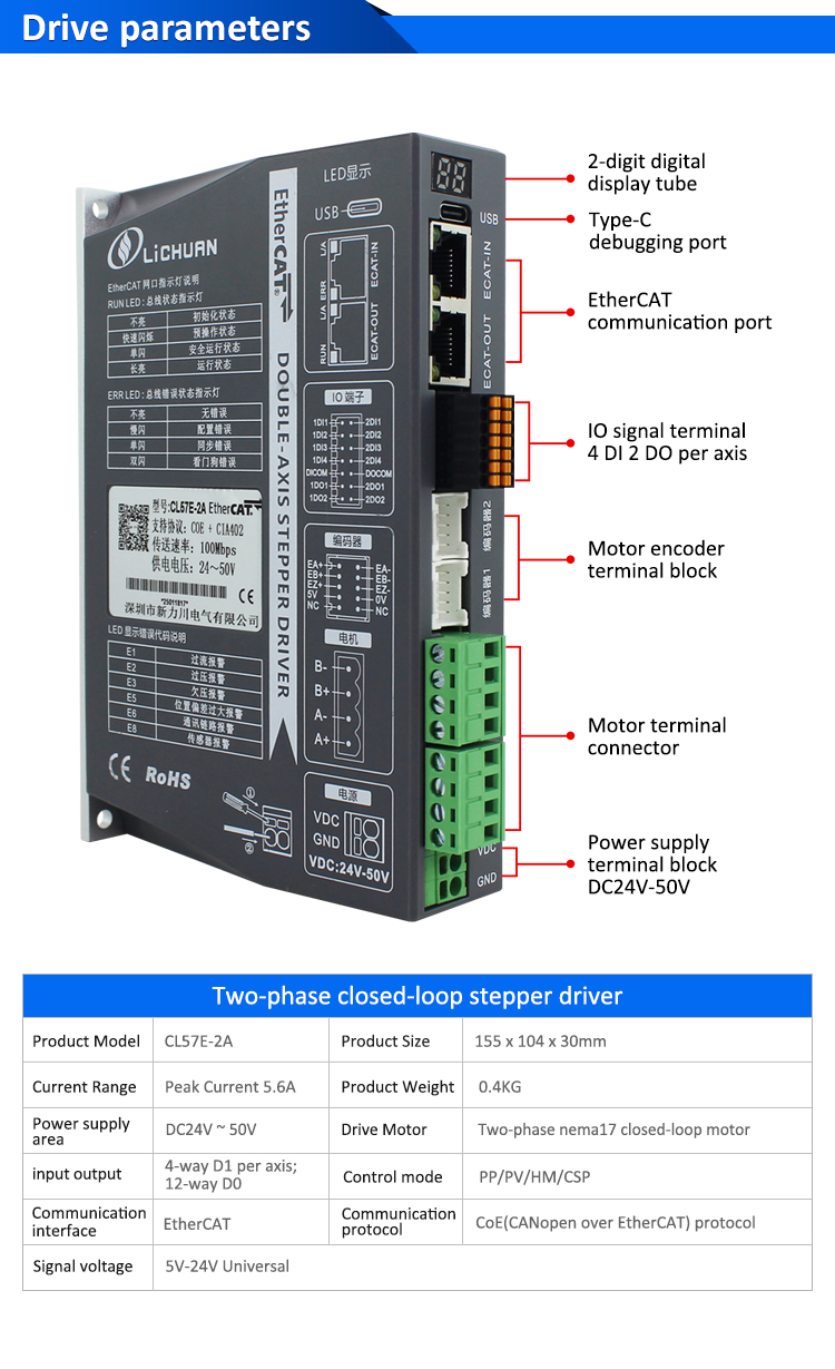 Súprava ovládačov krokového motora s uzavretou slučkou EtherCAT 2 Phase Nema24 4-osNové produkty EtherCAT 2Phase Nema17 2-osová súprava jednosmerných ovládačov krokového motora s uzavretou slučkou vyrobená v Číne s CE/ROHS od LIHUAN®. Naša továreň je slávnym výrobcom a dodávateľom súpravy ovládačov krokových motorov EtherCAT 2Phase Nema17 2-osový DC v Číne. Náš produkt je vysoko kvalitný / odolný / stabilná prevádzka a lacná cena. A poskytujeme prispôsobené služby.