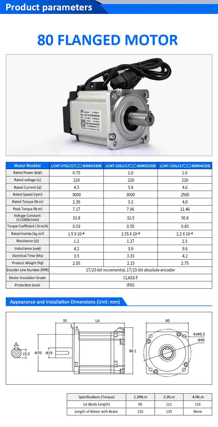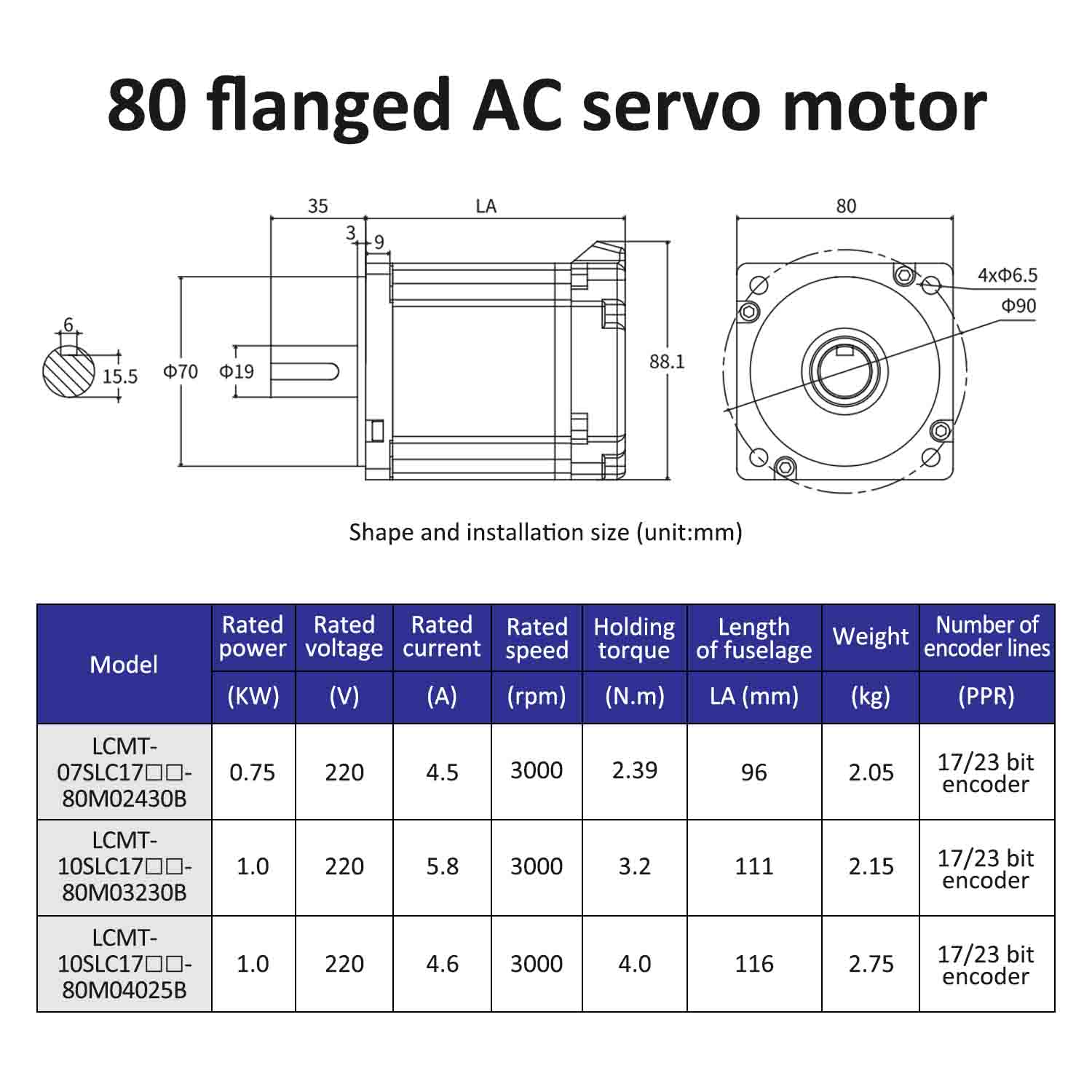| Model motora | LCMT-07SLC17-80M02430B | LCMT-10SLC17-80M03230B | LCMT-10SLC17-80M04025B |