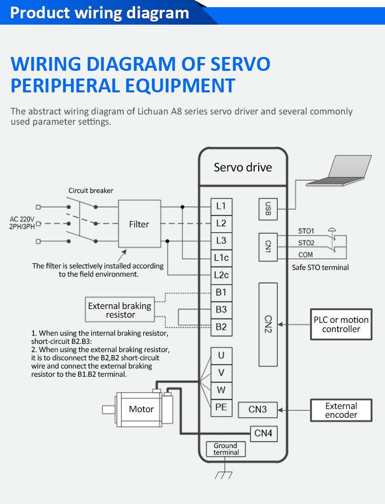 Táto séria je vysokovýkonný striedavý servopohon s integrovanou funkciou bezpečnostného vypnutia krútiaceho momentu STO (Safe Torque Off), ktorý je v súlade s bezpečnostným štandardom IEC 61800-5-2 a môže dosiahnuť bezpečné vypnutie v prípade núdze. Systém podporuje režim úplnej uzavretej slučky a dosahuje presnosť polohovania ± jeden impulz prostredníctvom spätnej väzby kódovača s vysokým rozlíšením, ktorá je kompatibilná s rotačnými motormi a aplikačnými scenármi lineárnych motorov. Je vybavený ladiacim rozhraním typu C, podporuje konfiguráciu parametrov v reálnom čase a má vstavané komunikačné rozhranie RS485 (protokol Modbus RTU) a prenosovú rýchlosť je možné nastaviť od 9,6 kbps ~ 115,2 kbps. Prijíma algoritmus riadenia orientácie magnetického poľa (FOC), ktorý je vhodný pre príležitosti s vysokou dynamickou odozvou, ako sú presné CNC a polovodičové zariadenia.