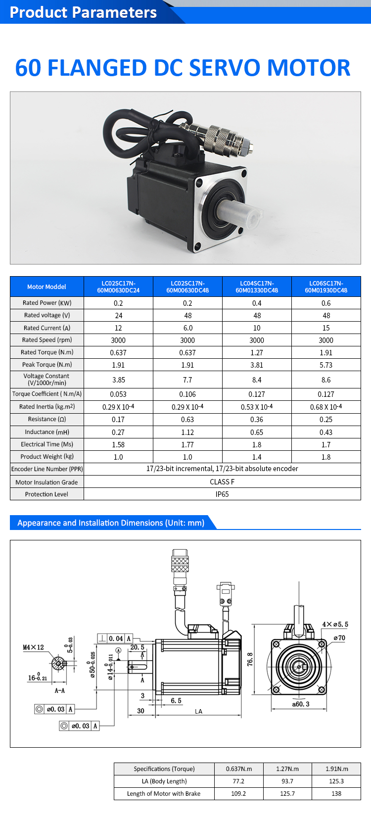 Súprava ovládačov pre nízkonapäťový jednosmerný servomotor Pulse/RS485/CANopen/EtherCAT 60 FLANGED 400W