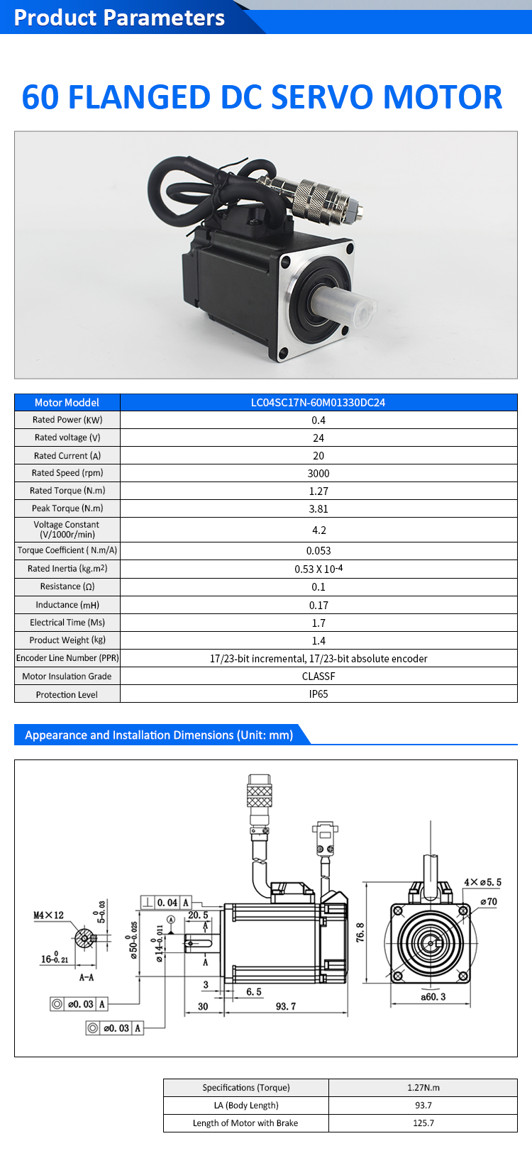 Súprava ovládačov pre nízkonapäťový jednosmerný servomotor Pulse/RS485/CANopen/EtherCAT 60 FLANGED 200W/400W/600W